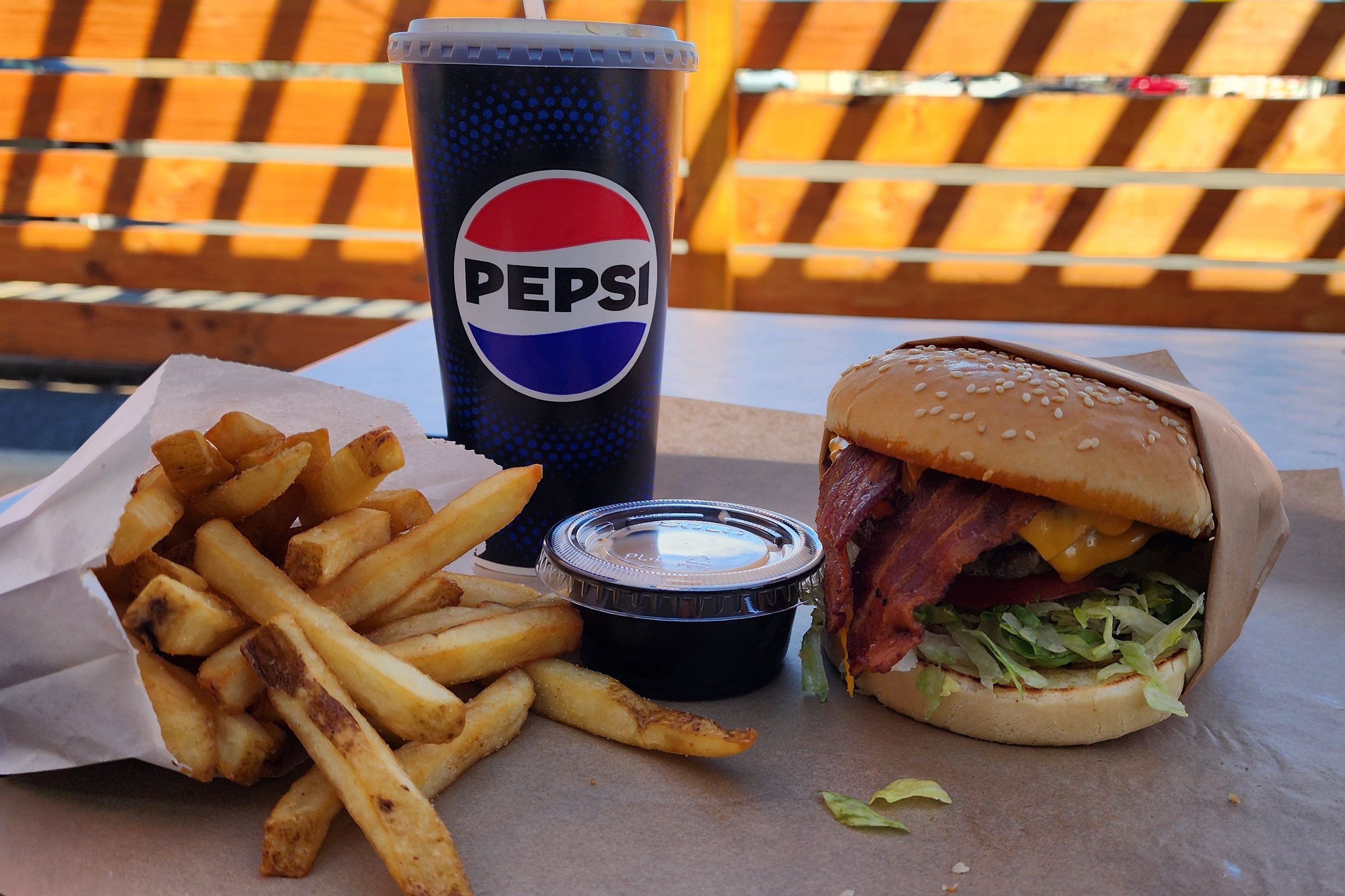 Average! Average! Average! This burger was about as middle of the road as you can get. It’s not bad, but it’s also not amazing. We went with the double bacon cheeseburger to keep things simple. The burger came wrapped on my tray and looked pretty good from the outside. I have definitely seen worse-looking burgers. There was nothing in the presentation that really wowed me. Moving into the flavor and sticking with the theme was a mid-burger with everything you would expect and anticipate, but being a little on the messy side. The shredded lettuce was fresh, and the tomatoes were not crazy crisp but still had some firmness to them. I have probably had this burger many times in my life without really knowing it.
