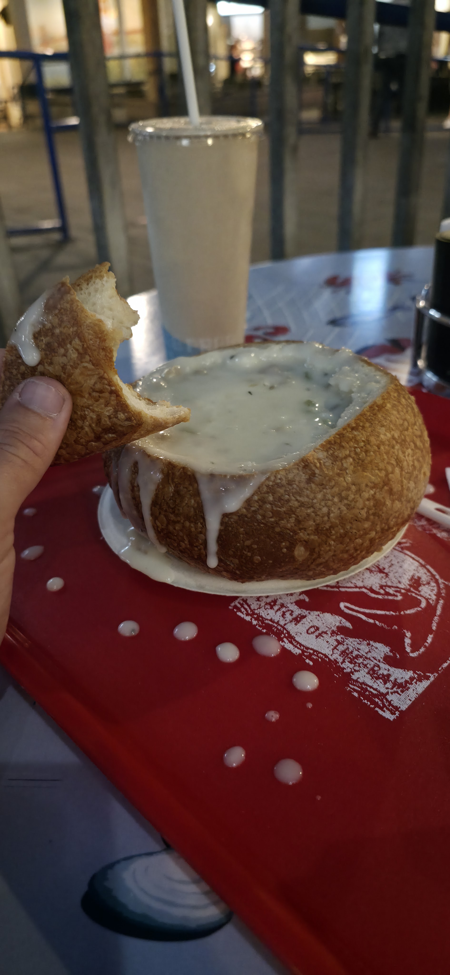 Then, winding down to the end of the night, we walked down to Pier 39 to check out the shops and ambience of a big city! I really like the boardwalk; it had stellar vibes, complete with more seals and a Ferris wheel to boot. I had yet to get some clam chowder ok this trip, so we had to stop and eat in the perfect setting! After a day like that, I was exhausted haha!